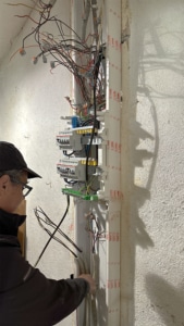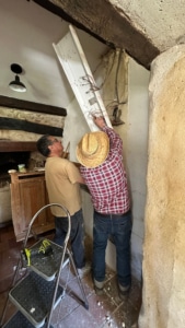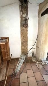 Understanding the electrical circuitry in the lower house proved challenging, due to an outdated switchboard combined with non-standard layouts and years of improvised DIY work. An urgent first step was therefore a safety upgrade, consisting of the installation of a new electrical panel and the identification and protection of key circuits. This work was led by  neighbour and local DIY expert, Dominique.